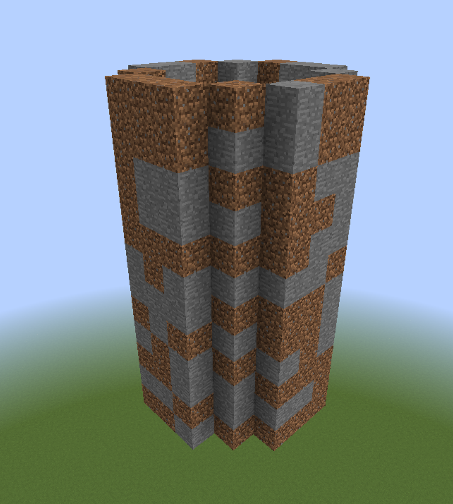 For example, //hcyl stone,dirt 3 12 will create a hollow cylinder of stone and dirt with a radius of 3 and a height of 12.
