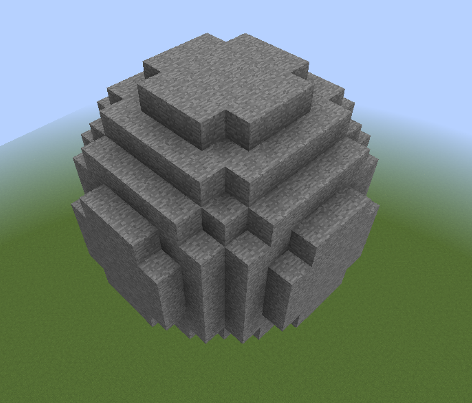 Using the //hsphere <blocks> <radius> command, you will create a hollow sphere (empty in the middle) with its center at the location where you are standing.