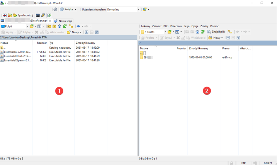 Window 2 contains the server files - each folder with a name consisting of random characters corresponds to a server assigned to the account (this is its ID, e.g., 2ae6dfal6adw1).