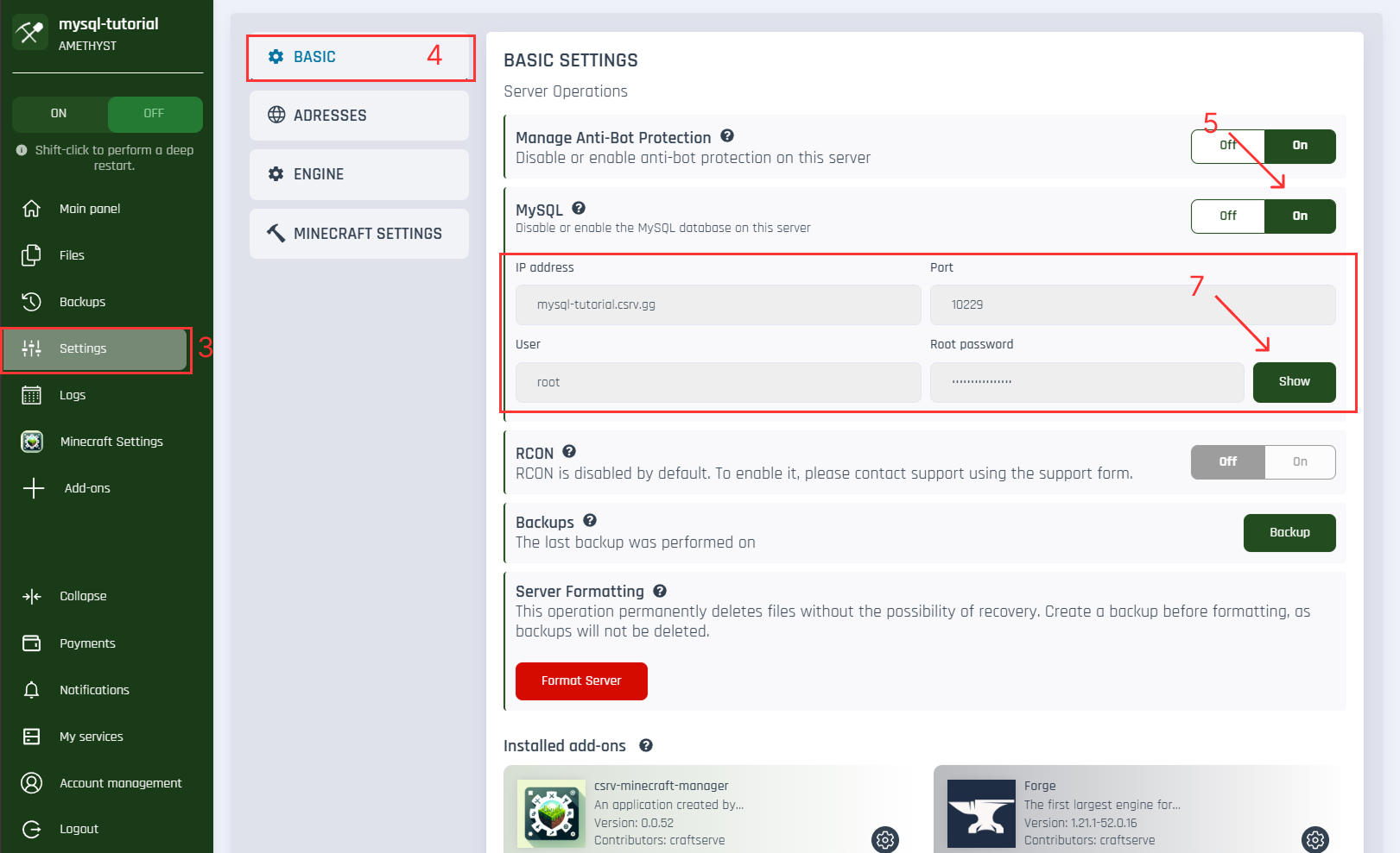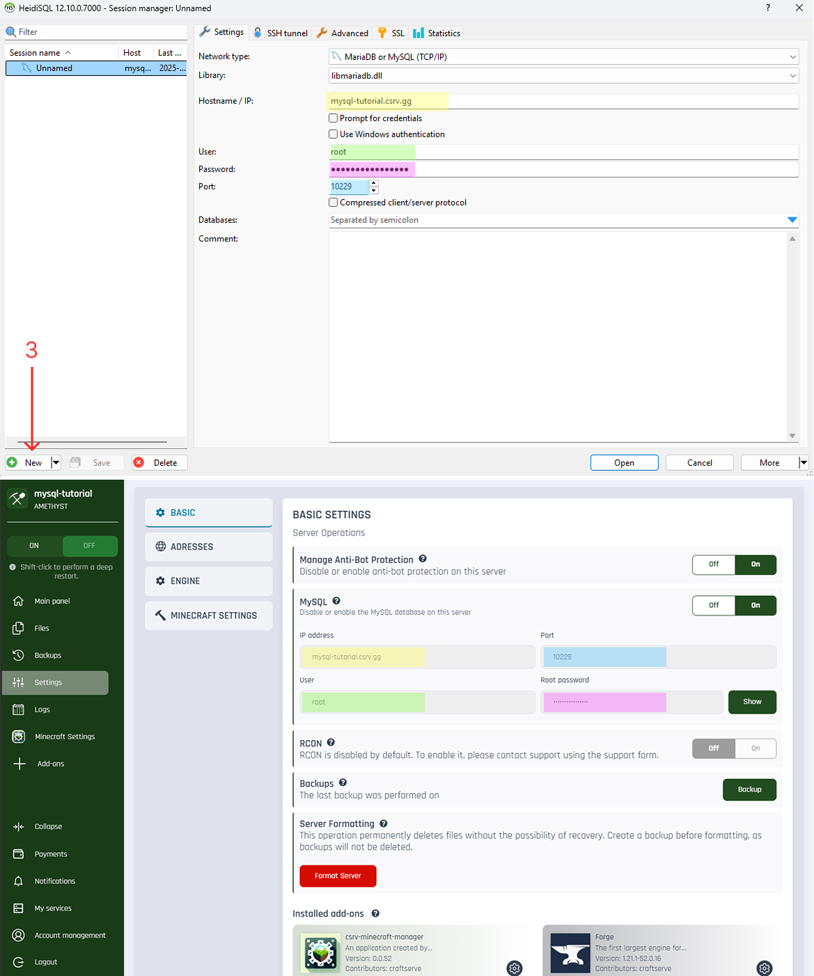 🔴 Note: MySQL access will be available once the server has started or stopped.