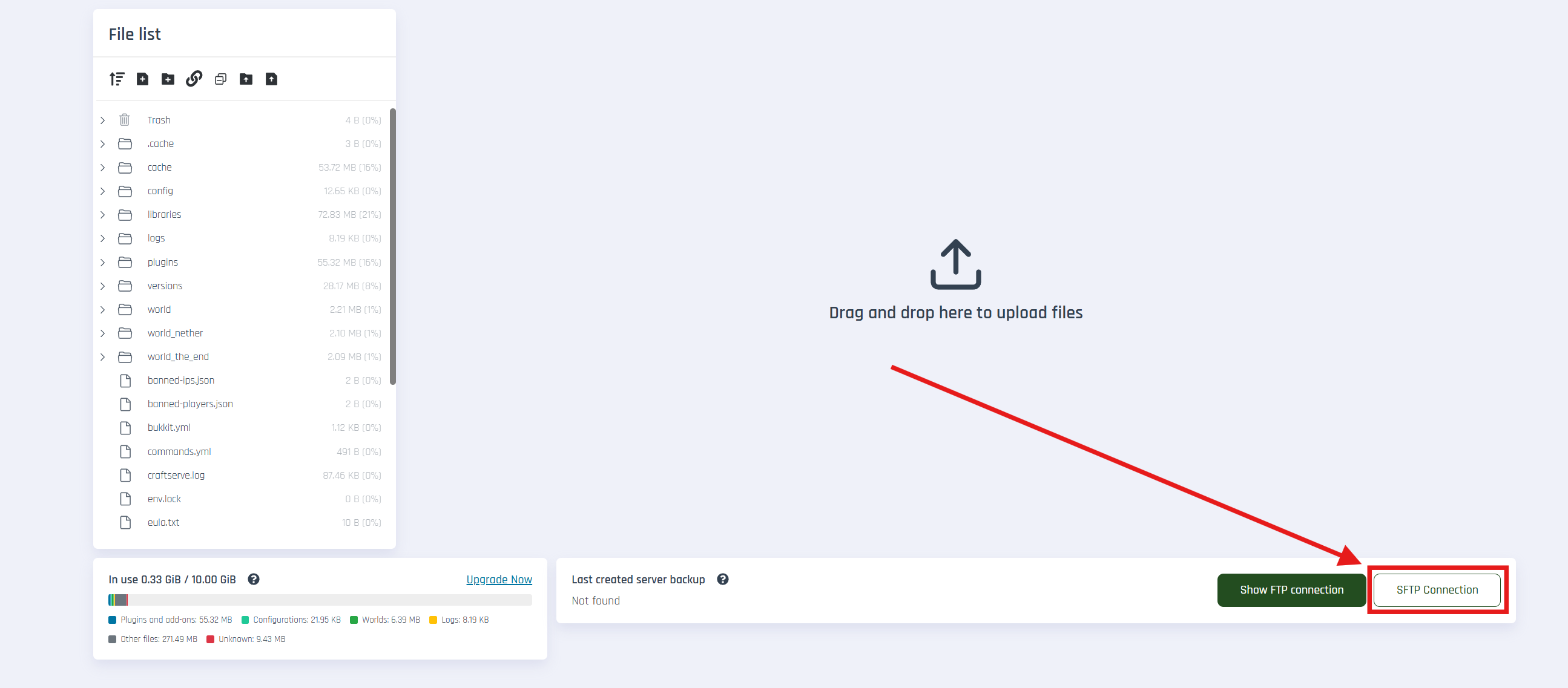 In the server panel, go to the Files section and click SFTP connection.