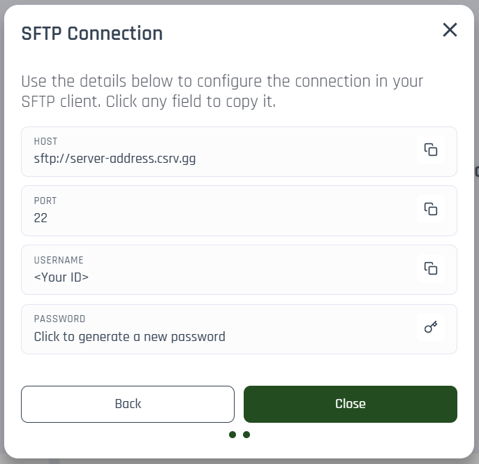 SFTP (SSH File Transfer Protocol) is a secure way to transfer files between your computer and server. Craftserve provides SFTP details in the server panel, and you can generate or reset your password anytime.