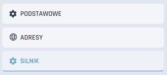 Wybierz silnik, który potrzebujesz z dostępnej kategorii i listy.