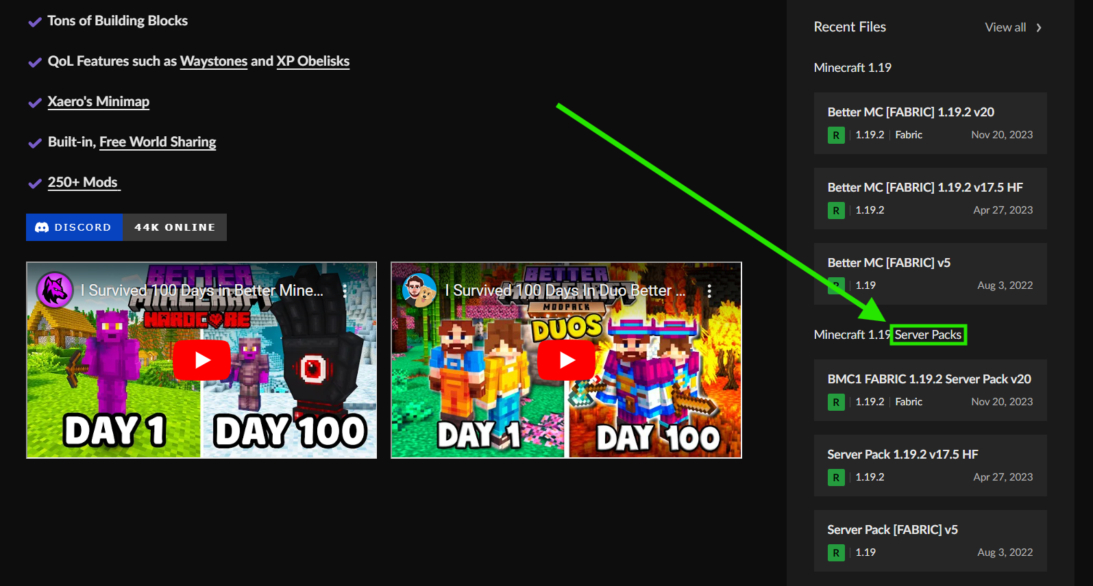 2. Pobierz modpack wersję modpacka przykładowo z tej strony. Pamiętaj, aby pobrać serwerową wersję paczki, czyli "Server Pack".