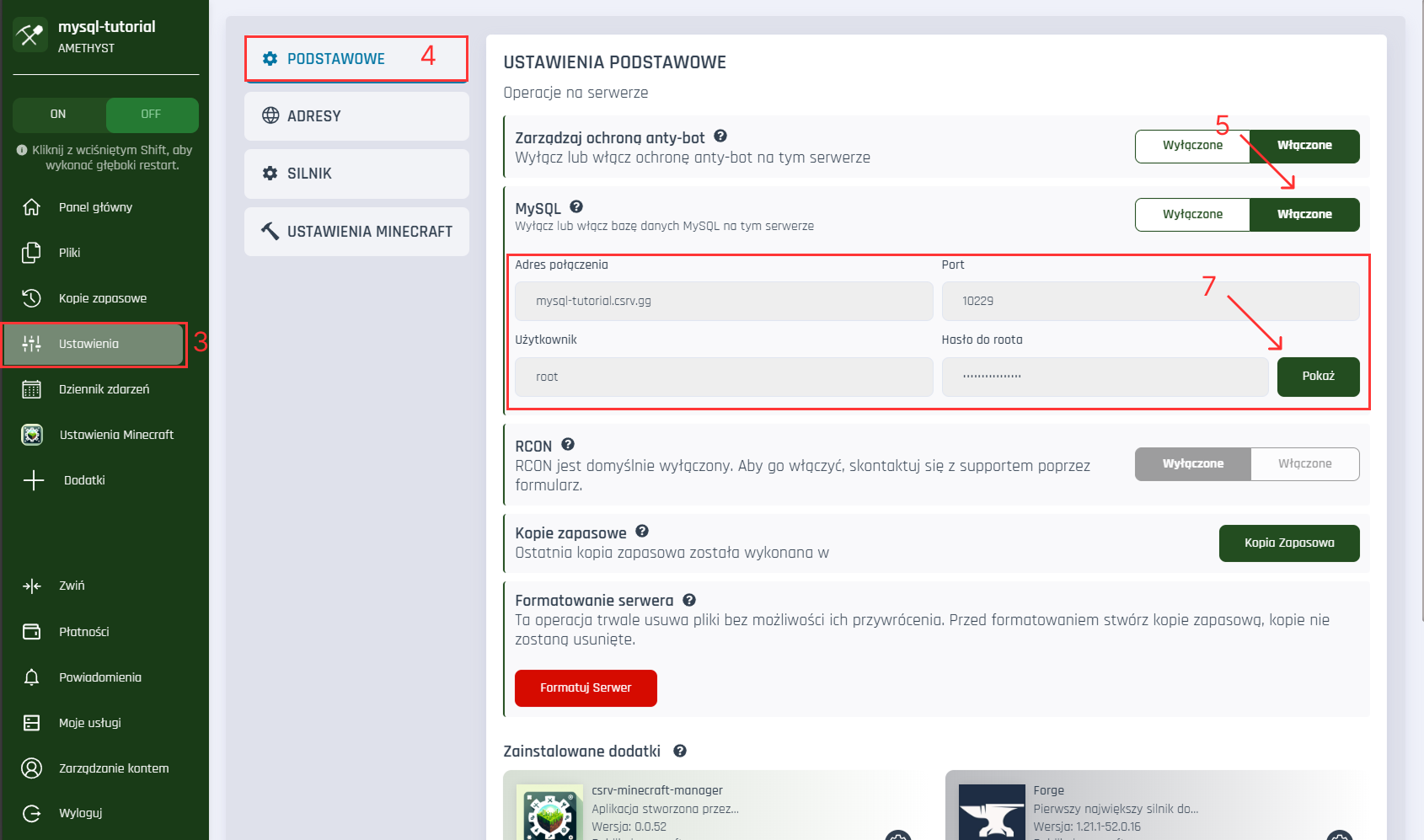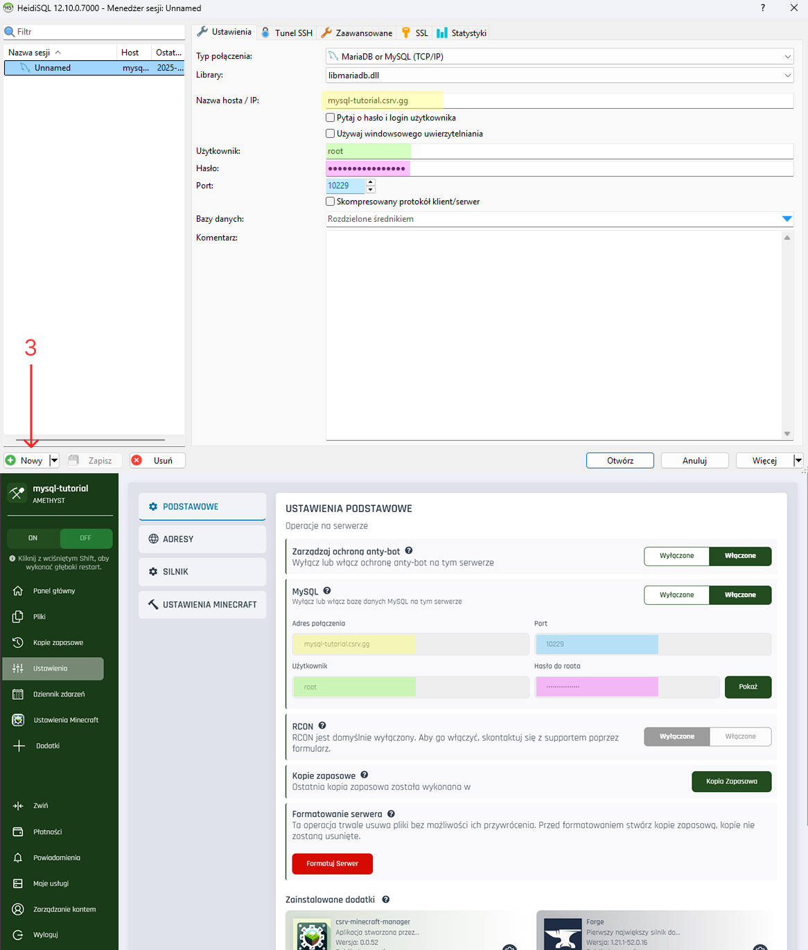 🔴 Uwaga: Połączenie z MySQL będzie możliwe po zakończeniu procesu od uruchamiania/zatrzymywania serwera.