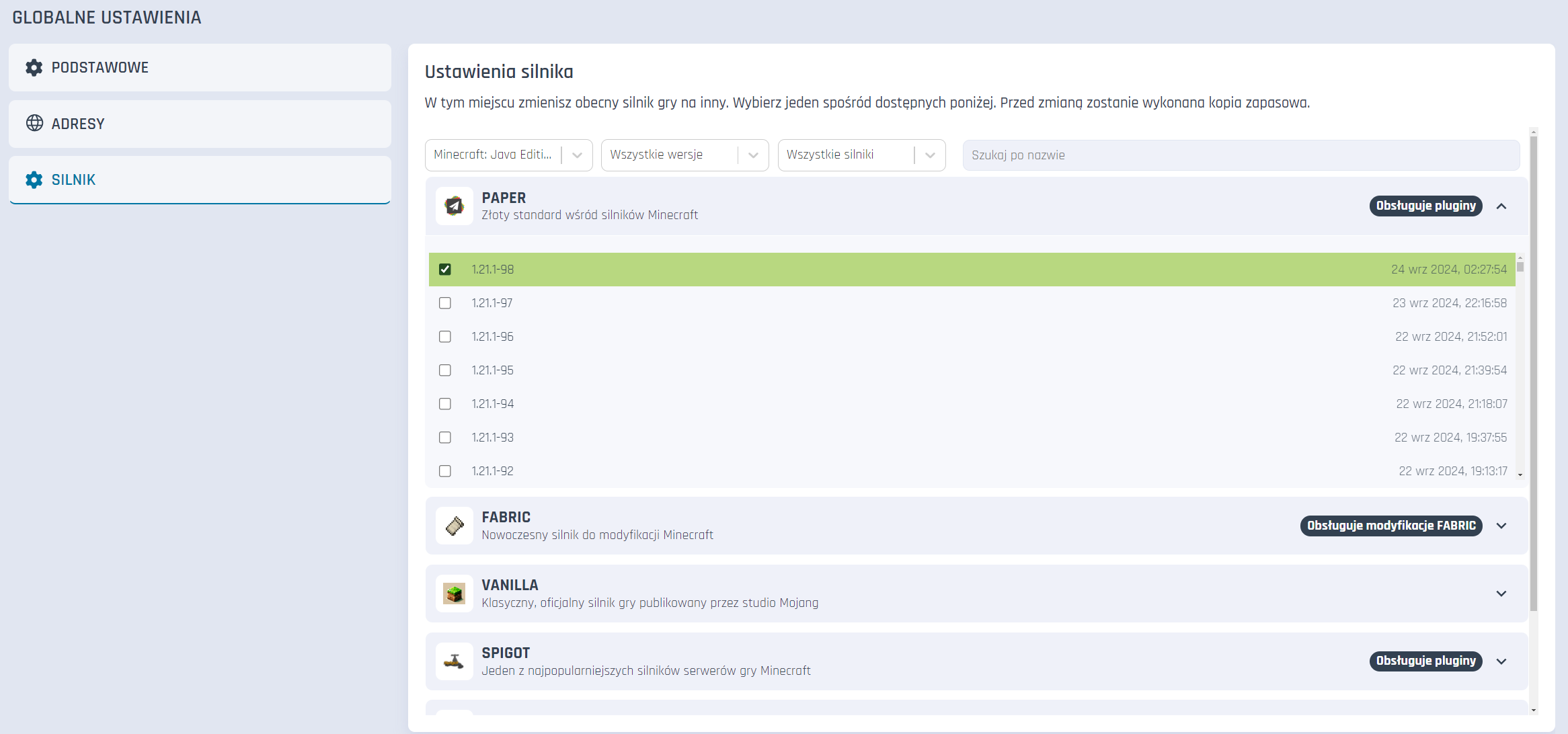 Pozwalają na zarządzanie podstawowymi opcjami na Twoim serwerze. Znajdziesz je w jednej z zakładek na pasku po lewej w panelu serwera.