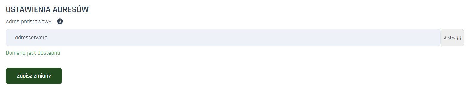 Adres podstawowy Ustaw adres łączenia z Twoim serwerem z poziomu gry